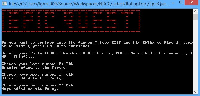 Console.WriteLine("Create your Party (BRW = Brawler, CLR = Cleric, MAG = Mage, NEC = Necromancer, THF = Thief)...");