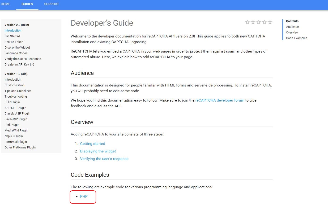 This is where it got a little trickier to proceed. On the reCAPTCHA documentation site, for version 2.0, I could only see examples for PHP: