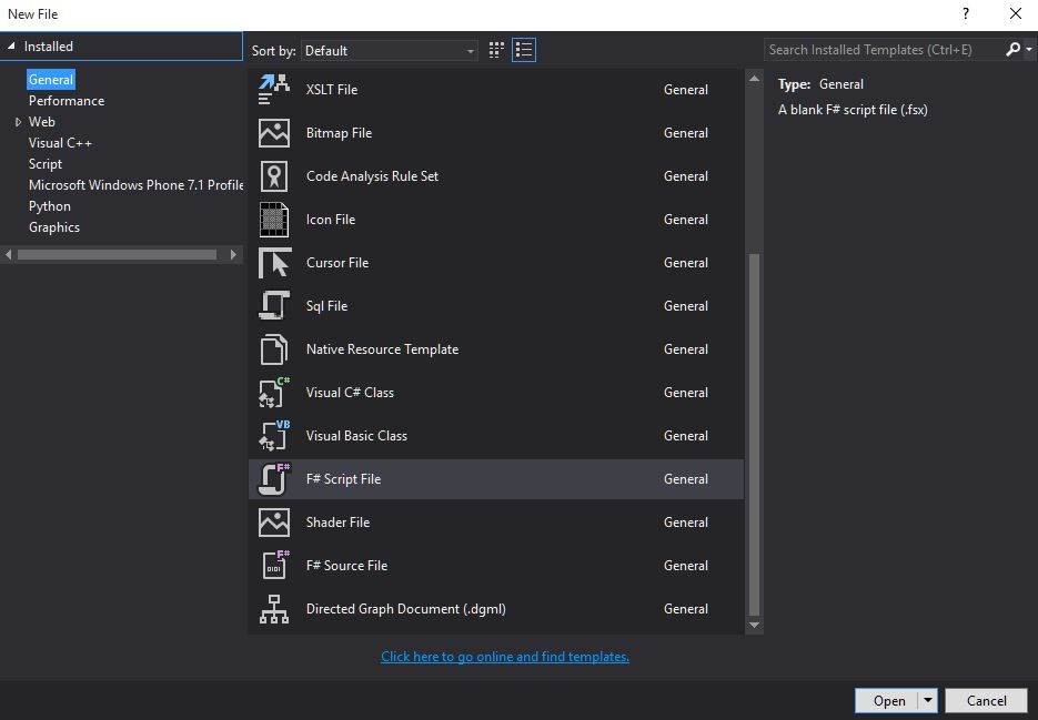 Once your project is created you can access and begin scripting using the .fsx file included in the project; no sweat so far!