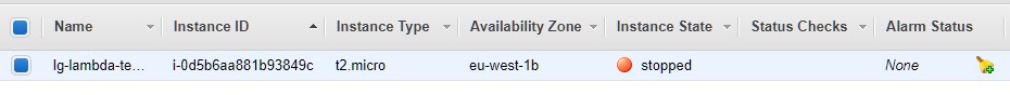 Once launched feel free to stop the instance for now. We’ll be using a Lambda to spin it up very shortly!