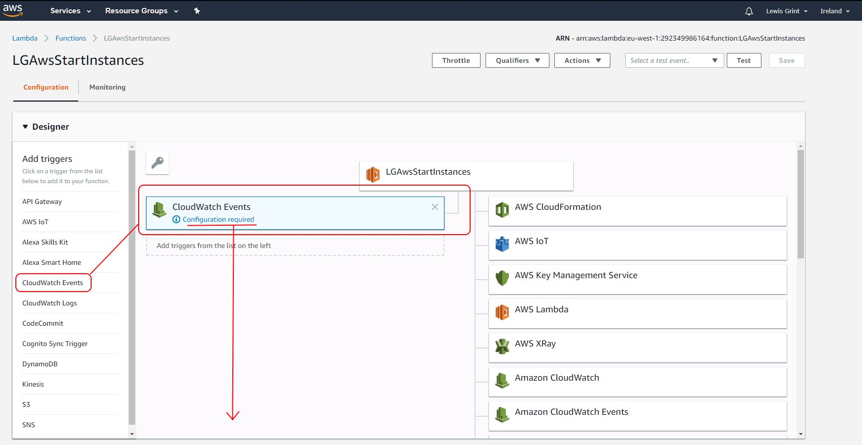 - I’ve listed my function name as ‘LGAwsStartInstances’, not using the period character which is invalid in this instance.