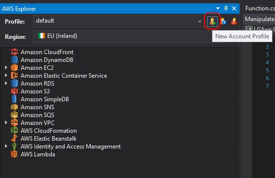 A little tip – If you’ve already closed the AWS Toolkit ‘setup’ screen a ‘Profile’ can be configured via the AWS Explorer window. This can be accessed within Visual Studio via View > AWS Explorer: