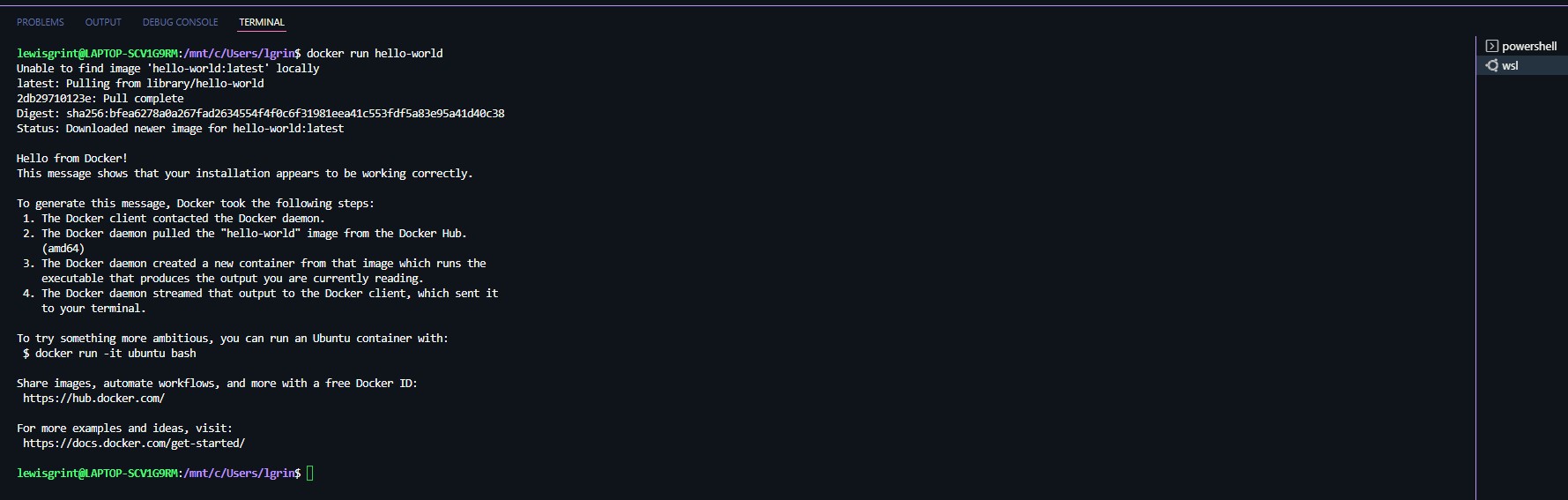 Let’s run the Docker hello-world Image as a full-blown confirmation that we are ready to rock and roll:
